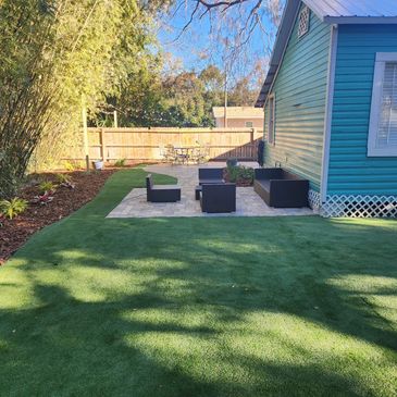 Paver patios, artificial turf, fire pits, lighting, and water features — expertly crafted to elevate your outdoor space.